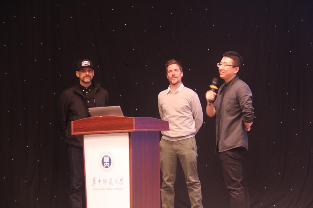 教育信息技术学院讯 (通讯员 熊炜) 12月17日下午,“当人工智能遇上新媒体艺术”联合讲座于九号楼六楼演播厅举行,本次联合演讲的主讲者为美国信勒冈大学数字艺术暨新媒体教授Michael Salter、新加坡LASALLE艺术学院新媒体实验室主任Andreas Schlegel及美国加州大学分校媒体艺术与科技博士罗捷亮。我院教育技术系系主任张屹、数字媒体系主任宁国勤参加本次讲座。