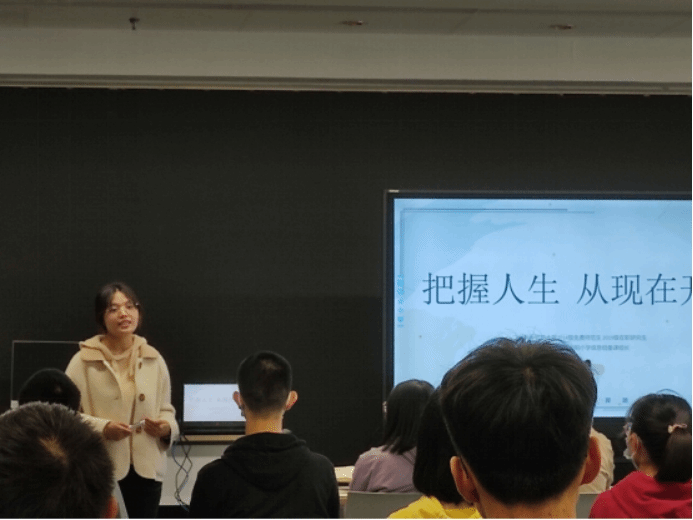 接下来范淑文老师通过视频会议的方式分享了她的大学学习生活经验和工作的经历,介绍了“如何规划大学学习和生活”“师范生的专业素养和职业规划”等内容。分享交流中,范老师结合自己的教学经历、工作现状和岗位要求,给大家提出了一些未来的发展意见。最后,范老师鼓励师范生要重视专业学习,重视实践技能训练,关注领域新形势,为更好适应未来工作打下坚实基础。