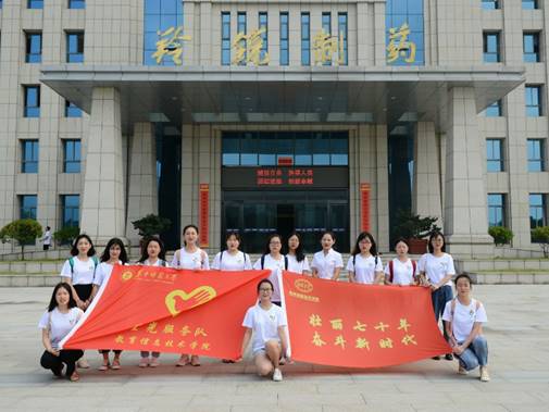 (实践队员在羚锐制药门前合影·来自华中师范大学教育信息技术学院宣传)