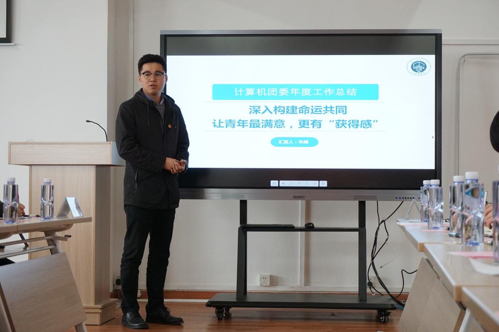 随后,计算机学院团委书记朱峰以“深入构建命运共同,让青年更满意,更有获得感”为主题,介绍了计算机学院2017年的工作情况、IT精英发展中心等具有计算机学院特色的活动以及计算机学院团委2018年的工作计划,他将此概括为“2018,改革整装再出发”,希望在新的一年里,计算机学院团委的工作能够更进一步。