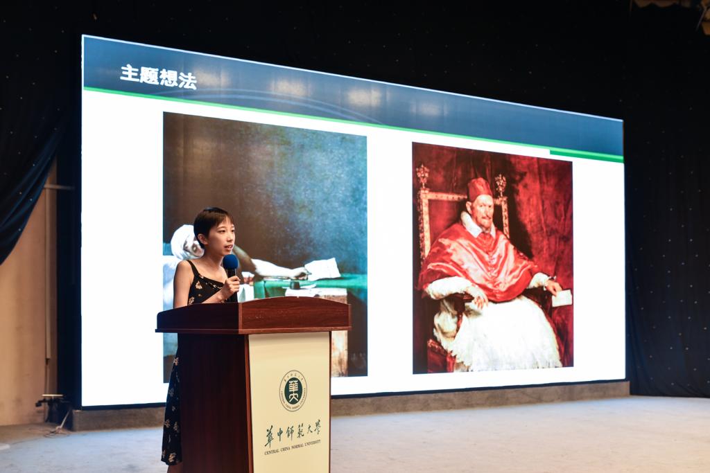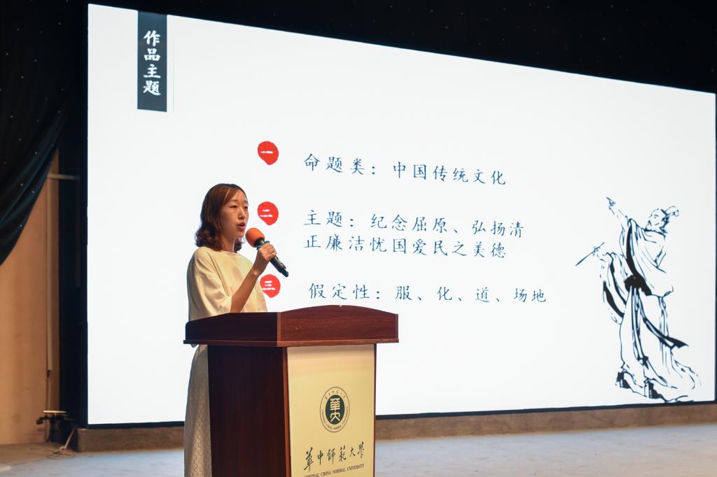 接下来是六位学生代表分别分享了他们对于课程的收获以及在完成作品过程中的心得与体会,他们所展示的作品分别是,三维动画技术类代表作品《明乐之声》、摄影类代表作品《世界名画的现代瞎想》、广告设计类四组作品、视觉传达类代表作品《Movie Plus》、二维动画类代表作品《人工制障》、影视类代表作品《荆楚遗韵》。其中2016级的王孟幸在广告设计作品的分享中向我们讲述了在选择商家上所经历的波折,提出“时间是检验真理的唯一标准”以及“及时止损,抛弃沉没成本”这两点收获。2015级的李博琳讲述了小组摄影作品的思路,是对于人们被电子产品包围和束缚的时代氛围的反思,同时他们的作品与名画结合,为世界名画提供了现代背景下的新语境。