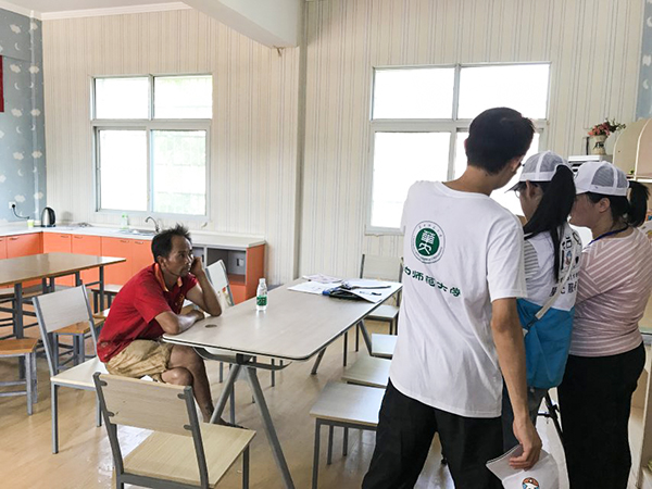 “欢迎,欢迎!”这是福利院的王学军院长见到服务队,所说的第一句话。,朴实的穿着,黑黑的脸庞,言谈幽默却又不失沉稳。王学军院长是黄陂区优秀党员,刚参加工作时,他是水管站的技术人员。今年是王学军成为乡镇福利院院长的第十一年。回忆刚接手福利院的情况,王学军说刚开始的时候,福利院条件很差,不仅房屋状况很不乐观,而且老人们也很少。在王学军接手之后,本着“住宿酒店化,管理医院化”的原则,着手改善了福利院的硬件设施,不仅修缮和新建了房屋,还给福利院配备了消防室、纳凉室和娱乐室等。福利院条件好了,老人们也越来越多。王学军说道,现在老人们越来越多,有些是因为行动不便,无人照顾,但现在越来越多的老人愿意来福利院居住,在外务工的年轻人担心老人独自居住不安全,都会将老人送到福利院居住。