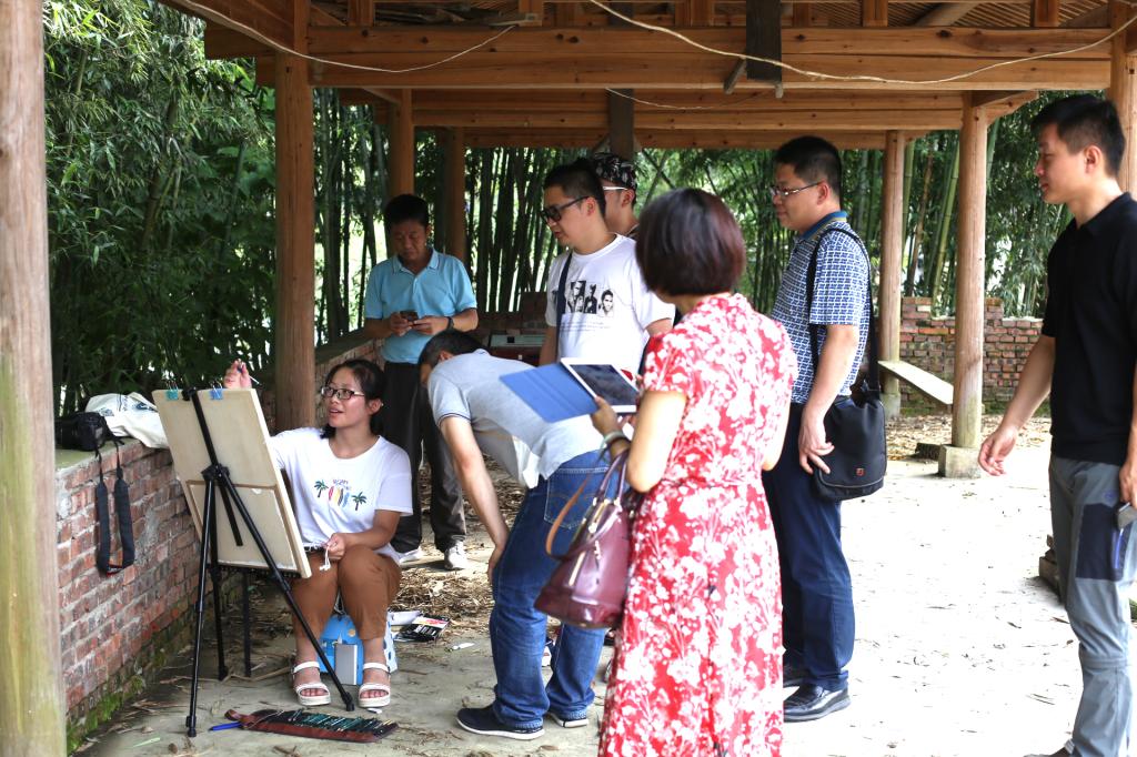 下午四点半,钟文锐副书记一行在写生实践带队老师谭政、王翔的带领下,实地了解了学生的写生实践情况。各位同学在村内的各个角落里摆好画具,工笔细描,谭政和王翔两位老师给每位同学在写生方面给予专业性的指导。