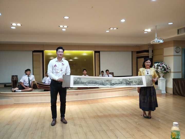 随后,我校教师佐一男、胡尉尉、甄诚也向泰方学校赠送了具有华师特色的礼物。接着,校方准备了具有泰国特色的传统舞蹈表演,并演奏了泰国乐曲。合影留念过后,“一带一路”中泰交流研习营开班典礼圆满结束。