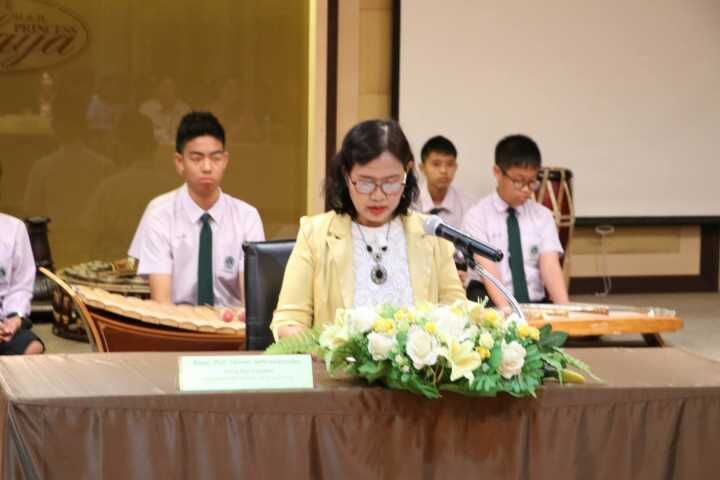 首先,由皇家大学执行校长Assoc.Prof.Sasinan Setthawatbodee致辞并亲自为访学团师生佩戴花环,并对我校研习营成员的到来表示热烈欢迎。接下来由佐一男发言,他表达了对瓦拉龙宫皇家大学的感谢并期望本次研习营圆满成功。