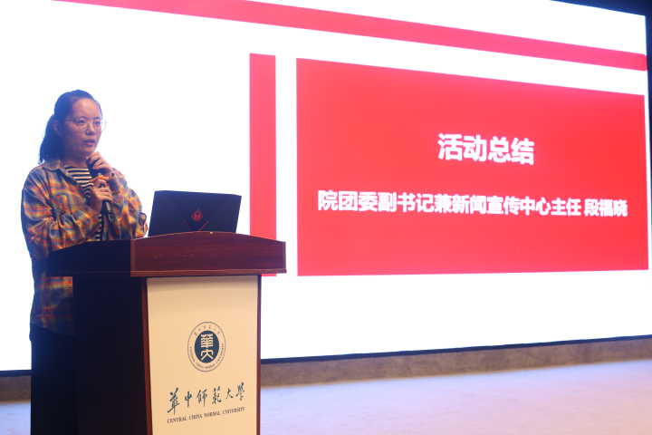 教育信息技术学院讯(通讯员 邓妍 王雨欣)为提升团学干事宣传能力,进一步提高学生干部综合能力,我院于10月18日晚在九号楼六楼演播厅举行团校培训第二讲-采访与新闻稿撰写,院团委副书记兼新闻宣传中心主任段福晓、华大青年新闻部文字主任吴琼、院团委学生会全体部委、2018级年级干部以及各班学生干部参加活动。