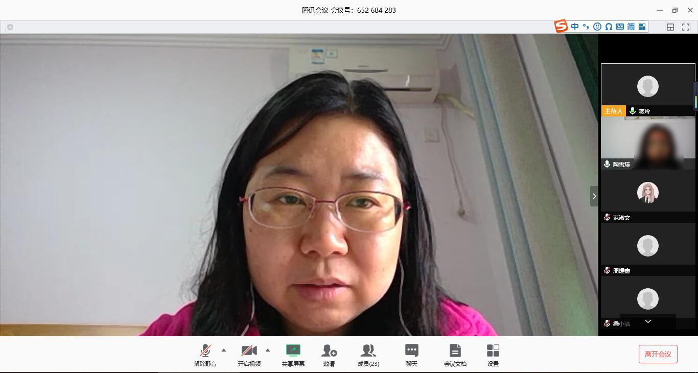 接下来是湖北籍的同学进行了分享。李安琪同学说她在老家自主隔离,会有社区和村委会的人来测量体温,外出买菜报给小卖部统一购买,现在环境也比较安全。从向淼同学说他也是在老家隔离,由于村子里没有确诊和疑似病例,加上村子管控比较好,在出隔离期后他也会偶尔自己打球适当运动。对于毕业论文,从向淼同学说目前的问题不是很大,但是实验中实际上课的环节还需要再考量。李梦婷同学目前也在老家,她描述整体防疫工作还是比较到位的,封村封路措施都在实行;希望疫情早日好转,早日拿到电脑写论文。分享结束后蒋玲老师表示对他们的状态表示放心。
