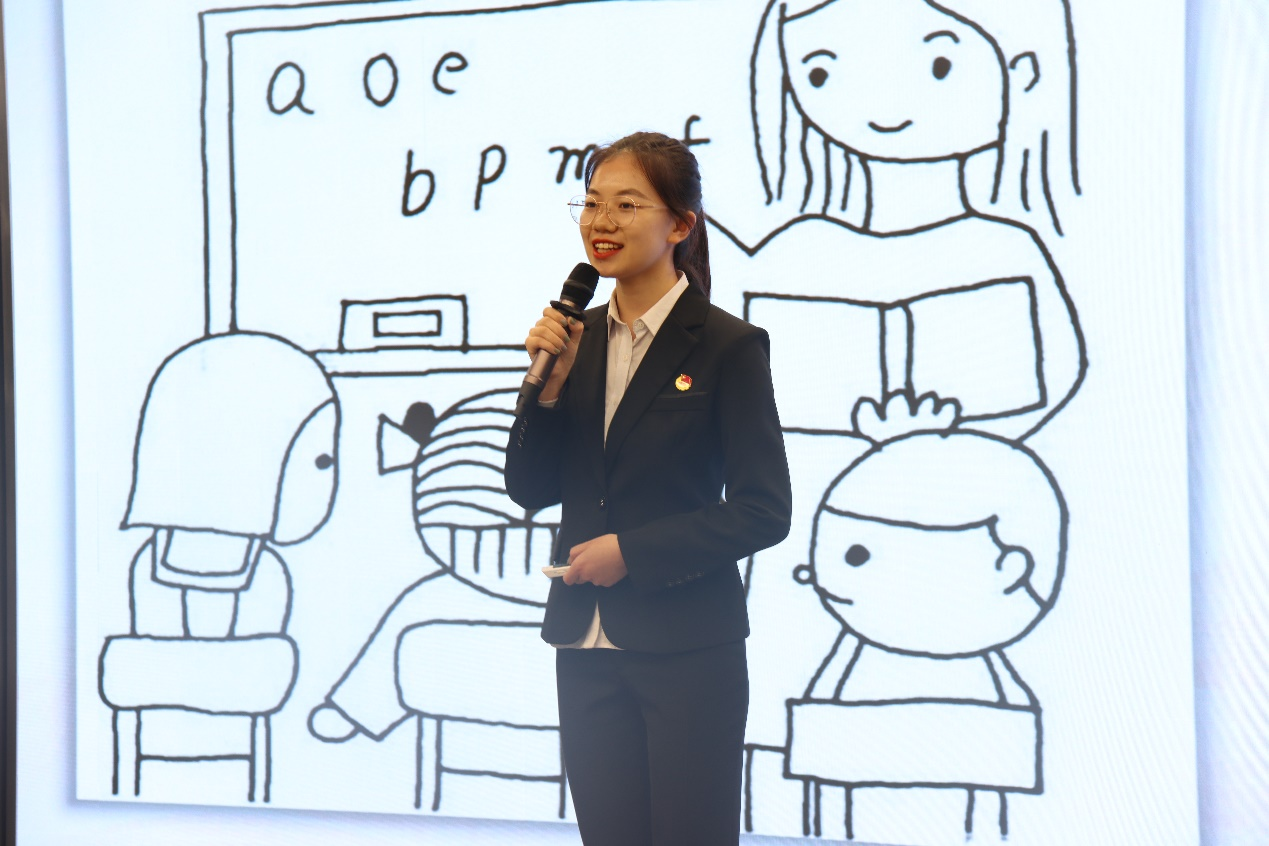 在第三组主讲人展示结束后,评委王泳涵在站位、语速、着装等方面进行点评并提出了一些演讲小技巧。紧接着下一组的主讲人配合着或激昂或婉转的背景音乐述说着打动人心的故事。一位又一位的主讲人用详实的资料,万全的准备赢得掌声一片。