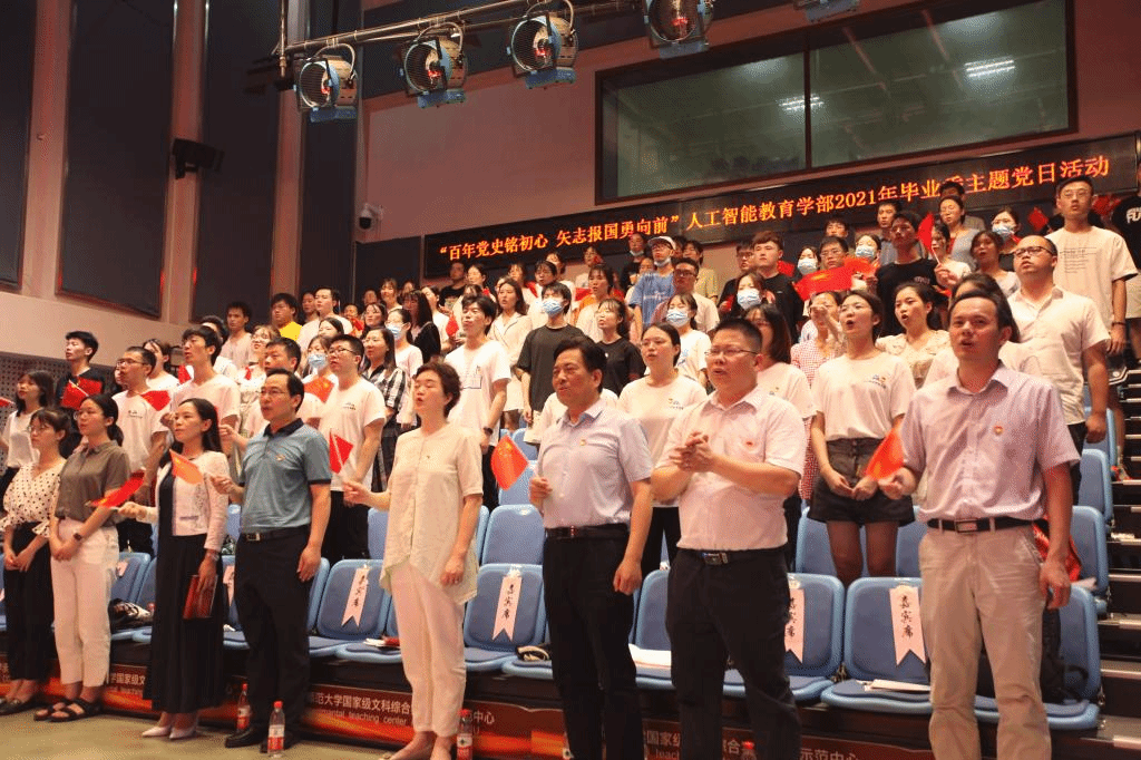 (通讯员 朱希雅 张咏瑜 王朝 顾菲尔)“人工智能教育学部的过去、现在与未来,都是一部永远跟党走的奋斗史。之所以能有这么多‘第一’,最根本的是在于党的坚强领导……”6月15日晚,人工智能教育学部党委书记罗丽华在党史学习教育专题党课中“解密”学部创造多个全国“第一”的“成功秘诀”。当晚,学部党委在演播厅举办并直播“百年党史铭初心 矢志报国勇向前”毕业季主题党日活动,以毕业生为主体的全体师生学百年党史、学红色校史、学奋进部史,在学思践悟中增强砥砺前行信心、践行矢志报国诺言。校党委组织部副部长连海江,校党史学习教育巡回指导组组员、美术学院党委书记付义朝受邀出席,学部党委书记罗丽华、正处职组织员盘华、党委副书记钟文锐、黄涛,教师教育学院副院长吴梦文、董中锋出席,各毕业生支部党员及教师党员代表现场参加,其他师生线上参与了活动。