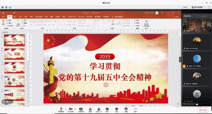 随后,贾祥成同志带领支部党员学习了十九届五中全会精神,回顾了国家在文化、经济、国防等方面取得的重大成就,以及根据现存问题,展望了“十四五”规划发展和2035远景目标。同时贾祥成同志激励大家:“希望大家都能立足自身,不忘初心,牢记使命,为实现社会主义现代化贡献自己的力量。”