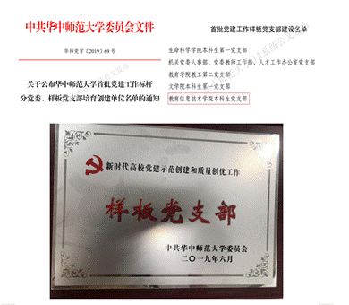 华中师范大学教育信息技术学院本科生党支部隶属于教育信息技术学院党委,目前由学生辅导员和来自教育技术学、数字媒体技术、科学教育三个专业的20名党员组成。近年来,支部严格对标《普通高等学校学生党建工作标准》和教育部党组关于实施“对标争先”建设计划的要求,全面强化政治功能,全面提升组织力,党建质量切实提升,育人成效显著提高。2019年,支部荣获学校2017—2019年度“先进党支部”称号并获批建设“首批党建工作样板党支部”。