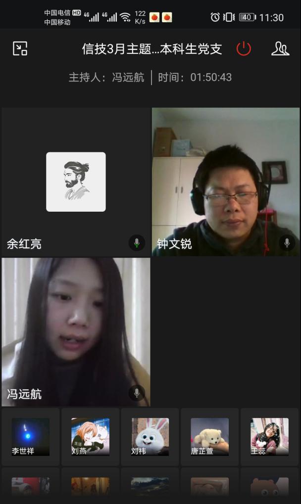 3月27日上午,教育信息技术学院行政党支部、本科生党支部联合举办了3月线上主题党日活动。活动由本科生党支部书记冯远航主持,院党委书记游丽以普通党员身份参加活动。