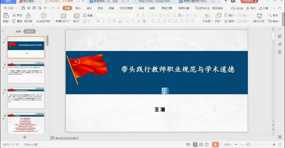 会议的第二项内容由王潘老师带领党员开展“带头践行教师职业规范和学术道德”主题活动。首先,王潘老师提到“四有”好老师的标准,就此谈及高校教师师德师风建设的重要性,接着带领党员学习师德师风建设的相关法律法规,特别提及华中师范大学关于师德师风建设的具体清单和条例。学习完相关的法律和条例后,王潘介绍了高校师德师风建设的部分正反面案例,其中特别提到几名高校老师因发表错误言论和行为不端受到处分、处理,为党员们敲醒了警钟。同时,党员们还一起学习了黄大年的先进事迹,纷纷表示以其为榜样,努力奋斗、报效国家。