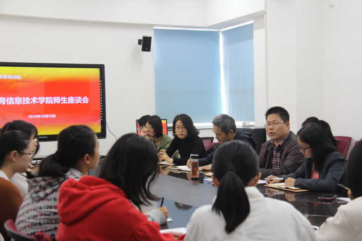 教育信息技术学院讯 (见习记者 郝明霞)10月19日下午,教育信息技术学院在9635会议室举行了第四届教学节系列活动师生座谈交流会,听取师生对人才培养的意见和建议。院党委副书记钟文锐出席,数字媒体系主任宁国勤、科学教育与传播系教师王世娟、本科教学秘书徐宏敏及各年级学习部长参加。