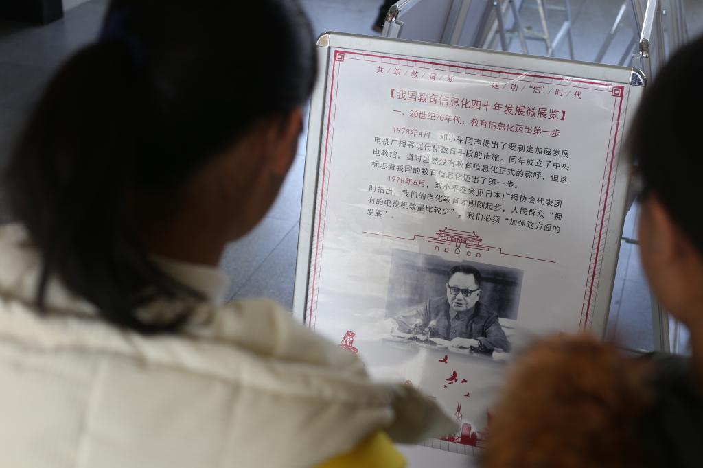 教育信息化四十周年图片展部分由海报形式呈现,海报共分九个板块,展现了自改革开放以来,中国的教育事业得到了飞速发展,从电化教育到如今的教育信息化2.0时代这一历程,讲述了这四十年间教育信息化的发展是一个循环渐进、不断进步发展过程。通过展示每一阶段教育信息化的成果来展现教育信息化的发展轨迹,让每位参观者都能够更加直观的了解改革开放的四十年里教育信息化的发展。