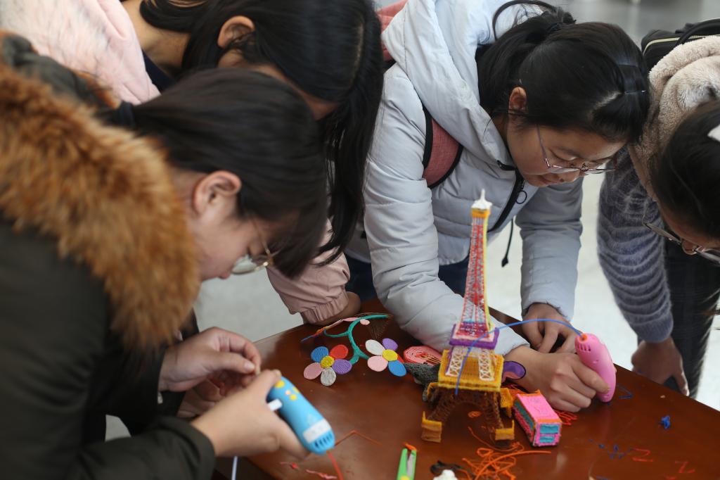 此次展览也展出了教育机器人、VR眼镜、3D打印笔、手写杆、mBot等实物,吸引众多师生前来参观与体验。我院创客教育协会举办创客教育面面观活动,以展示创客教育的现状和成果为主,通过现场促进学生对于创客教育的了解。他们通过现场互动教学的方式,教授参与观众3D打印笔的使用方式,制作出即时的创意小作品。还介绍了编程三维立体打印技术,通过现场实物展示让观众对创客教育有了更为直观的感受。科学教育与传播专业展示的有趣的小发明让在场的参与者前面亲自动手了解其背后原理,而教育机器人和VR眼镜更是吸引众多参观者驻足观看与体验。