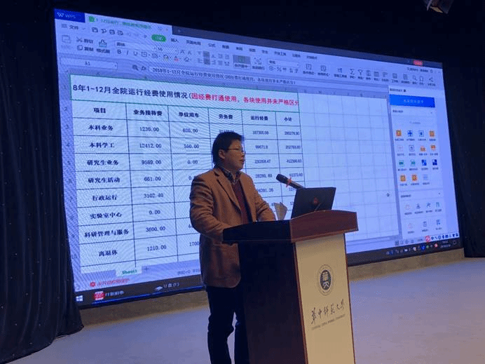 会议第三项,院党委副书记钟文锐作学院2018年度财务决算和学院2019年度财务预算报告,并对2018年年终绩效分配方案作出说明。会议第四项,院工会主席宁国勤教授作2018年度学院工会工作总结及福利基本情况报告。