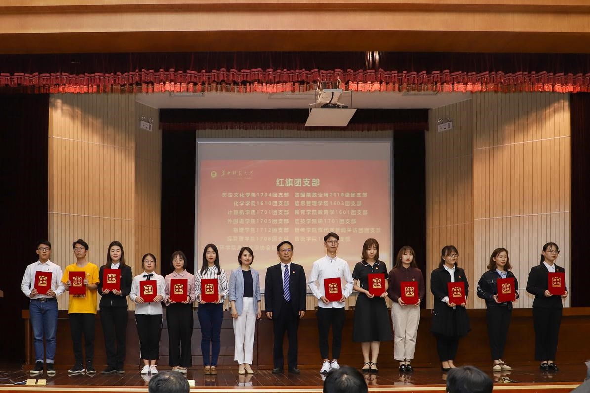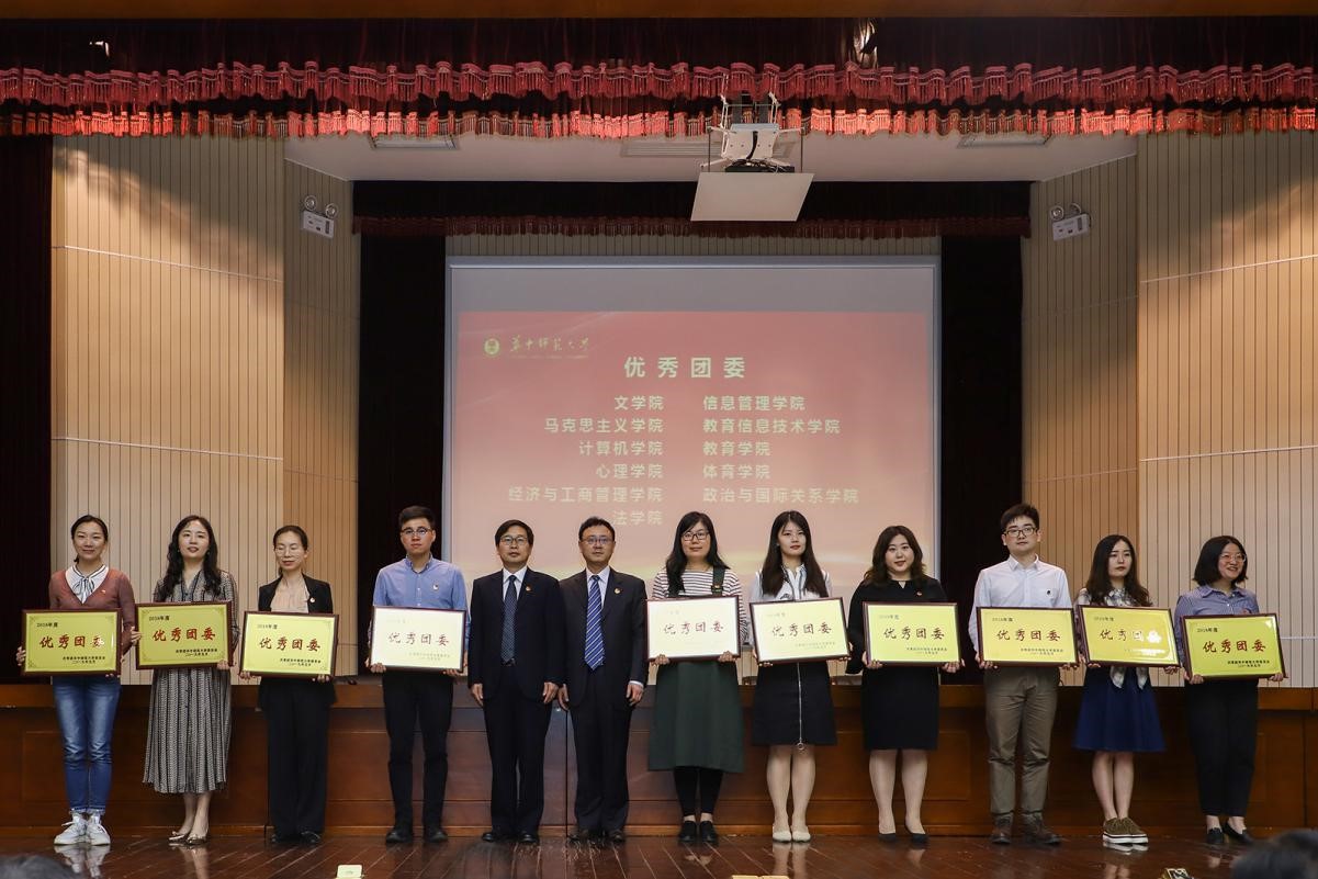 教育信息技术学院讯(通讯员 王琬)近日,我校纪念五四运动100周年暨建团97周年表彰大会在科学会堂报告厅举行,对2018年度共青团工作先进集体和先进个人进行表彰。我院团委荣获“优秀团委”称号,教育技术学研究生1701 团支部荣获“红旗团支部”称号,院团委书记胡尉尉荣获“优秀共青团干部(教工)”称号,2016级本科生韩絮荣获“优秀共青团干部标兵”称号。