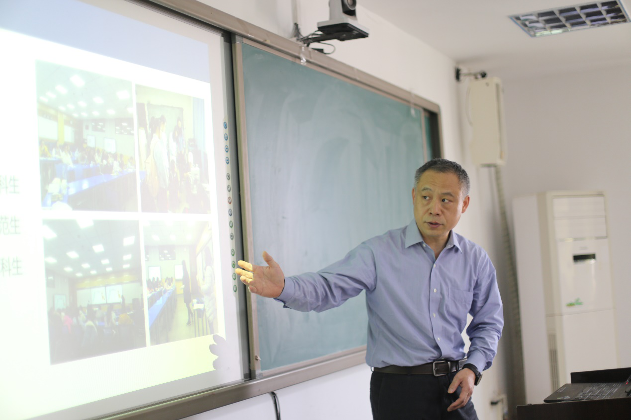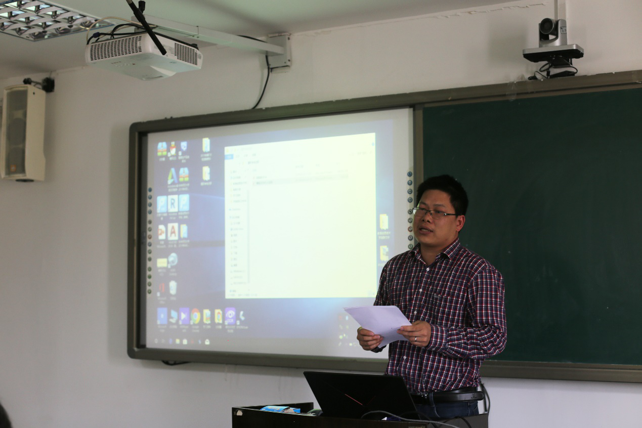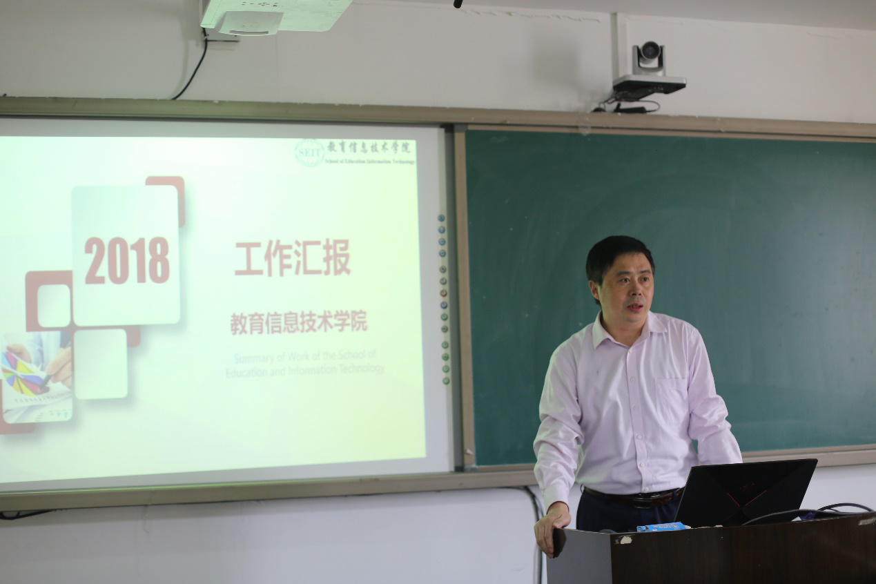 副院长杨九民首先从本科生教研方面分析了我院现在的教学情况和资源现状,他激励老师们积极“向上走”,打造更多精品课堂和优秀课程。在个人工作中,他介绍了相关项目和实验中心的发展方向与平台建设,并对进一步加强本科教育提出了建议。