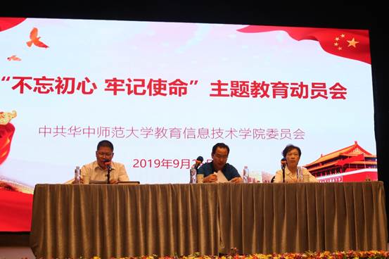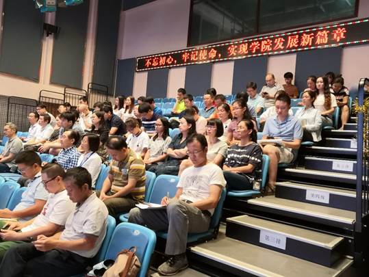 9月25日上午10:00,我院党委在9号楼6楼演播厅召开“不忘初心、牢记使命”主题教育动员会。校党委组织部副部长、“不忘初心,牢记使命”主题教育第三巡回指导组副组长连海江、院党委书记游丽、党委副书记钟文锐出席会议,学院班子成员、党委委员、教职工和学生党支部书记参会。
