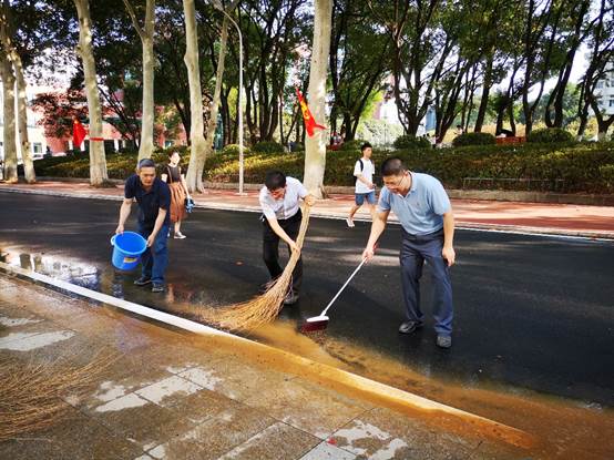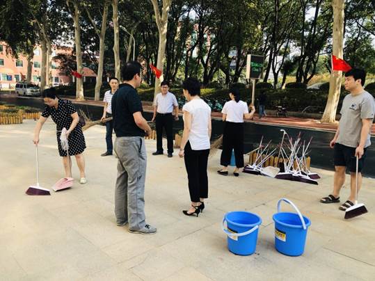 教育信息技术学院讯 为鼓励干部师生积极参与美丽校园建设,以崭新面貌和奋进姿态迎接新中国成立70周年,9月30日下午,根据学校统一部署,我院开展了“不忘初心、牢记使命”主题教育实践活动——美丽校园清洁行动。