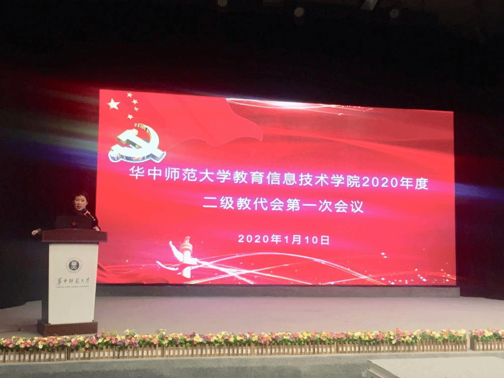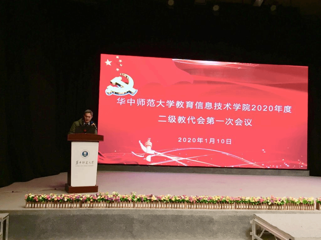 教育信息技术学院迅 2020年1月10日下午,教育信息技术学院召开2020年度二级教代会第一次会议,院党委书记游丽、院长刘清堂、副院长左明章、童名文出席,全体教职工参加了此次会议。会议由院党委委员、工会主席宁国勤主持。