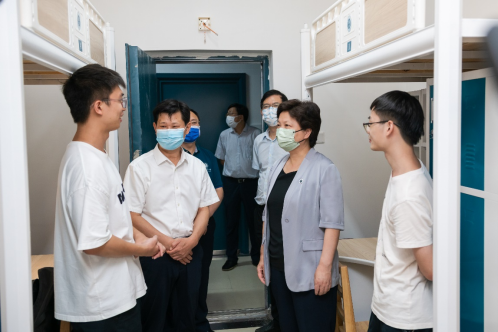 9月2日下午,为深入了解新生的适应情况,校党委书记赵凌云、校长郝芳华、副校长夏立新、校党委副书记陈迪明一行前往元宝山3栋看望2022级人工智能教学部新生并慰问迎新工作人员。
