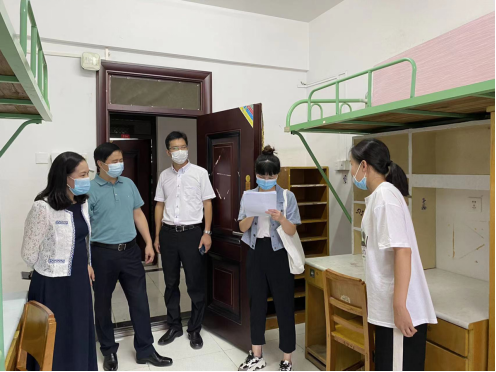 人工智能教育学部党委书记罗丽华、副部长刘清堂、伍伦贡联合研究院副院长吴和林、研究生辅导员王潘、张志、肖婧娟,依次走访南湖12栋,元宝山3栋研究生新生宿舍,看望人工智能教育学部2022级硕士研究生。