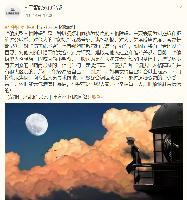 工作站每周定时在人工智能教育学部官Q空间推送“小智心理说”板块,致力于“将抽象的教育变成生动的解说,把平淡的知识变成趣味科普”。