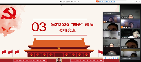 最后,党支部书记宋亚婷对“两会”相关的内容进行了分享,并对本次主题党日活动做出总结,指出开展此次党日活动旨在帮助支部成员更加深入理解透彻此次政府工作报告,并提醒大家对“两会”相关的内容要深入学习、深刻领会,同时提醒大家疫情期间不集聚,不传谣,坚守共产党员的初心和使命。
