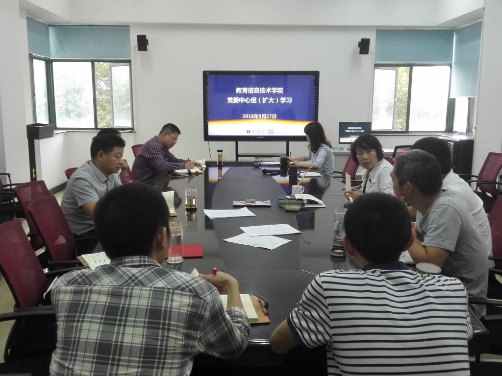 2018年9月27日,教育信息技术学院在9635会议室举行党委中心组扩大学习,院党委中心组成员、二级单位负责人、教工党支部书记参加学习。