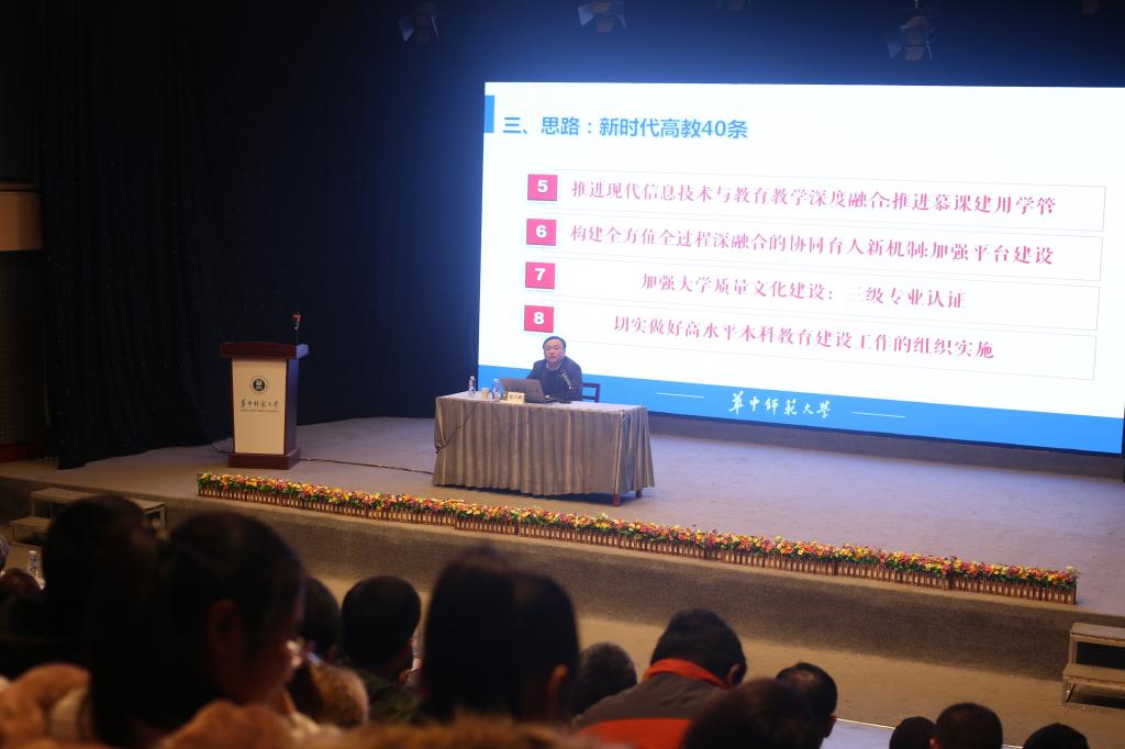 教育信息技术学院讯(见习记者 郝明霞)12月21日下午,教育信息技术学院在九号楼六楼演播厅举行党委中心组(扩大)、师生理论学习。此次学习邀请了副校长夏立新教授作人才培养改革专题报告。学院党委中心组(扩大)成员、教职工、学生支委参加,院党委书记游丽主持学习。