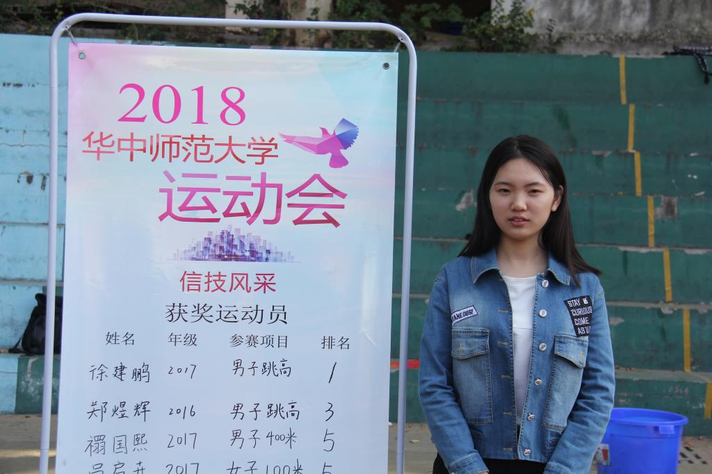 据悉,我院科学教育与传播专业的马育浦在2017年华中师范大学校运动会中,一举斩获了全校800米冠军,还打破了校女子组记录。本次校运动会更是再次斩获奖项,为学院增光添彩。马育浦笑着说道,本次比赛中,这个成绩也是自己已经尽力了。“江山代有才人出”,所以并没有留下什么太多的遗憾。她希望以后大家也都能积极参加学校的体育项目、展现自己的能力,而且在这些项目中,同学们不仅能获得体能的锻炼、保持身体的健康,还能增强学院凝聚力、提高集体荣誉感。