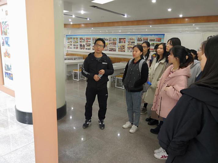 部分同学赴武汉外国语学校开展活动,该校是湖北省重点中学、湖北省示范性学校。进校后,带队实习老师佘静文等人首先带领1601全体同学参观了学校的校史馆与图书馆,介绍了学校的历史以及信息技术学科的建设状况,让参与见习活动的学生对学校有一个初步的认识,并对学校建设的技术环境有了基本的了解。