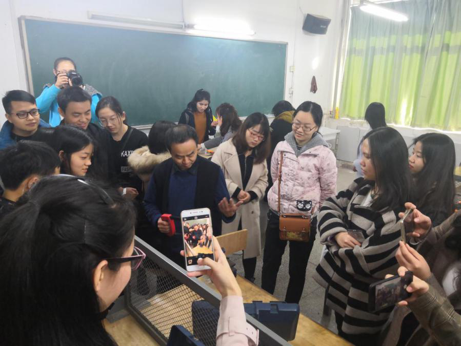 最后,全体同学参观了学校的创客教室。教室中有着各种用于学生自主动手锻炼的设备,例如3D打印机、小型机床、机器人等。另一边展览着该校学生的作品。负责老师说,或许学校的设备虽然不是最好的,但学生却用这些东西发挥着他们最大的创造力,是真的在自己动手制作自己的作品,因此师范生们现在也要进行相关知识的储备。