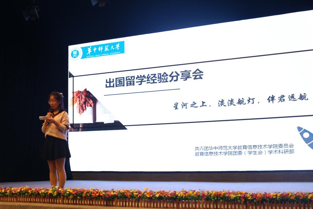 教育信息技术学院讯(见习记者 郝明霞)11月23日晚,我院在9号楼六楼演播厅举行了出国出境交流经验分享会。本次分享会邀请我院2015级本科生陈清泓、鲍姝语、 2016级刘昕、2017级李瑞宁作为分享者,旨在通过分享出国出境学习经历,提升我院学生国际视野。