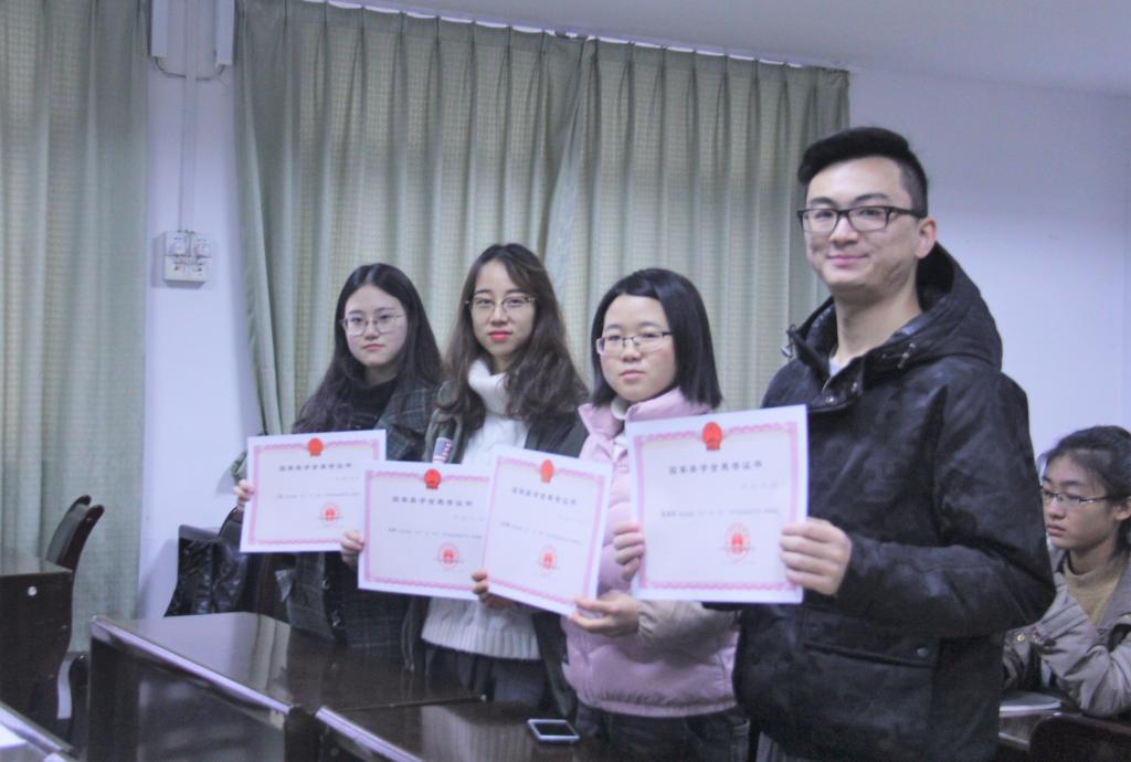 活动开始,冯远航介绍了本次分享会的主要内容,鼓励同学们向榜样看齐。之后,钟文锐对获奖者进行了简单介绍,并希望同学们通过本次交流分享会,能够在学习思想上有所收获。最后,钟文锐为四位国奖获得者颁发证书。