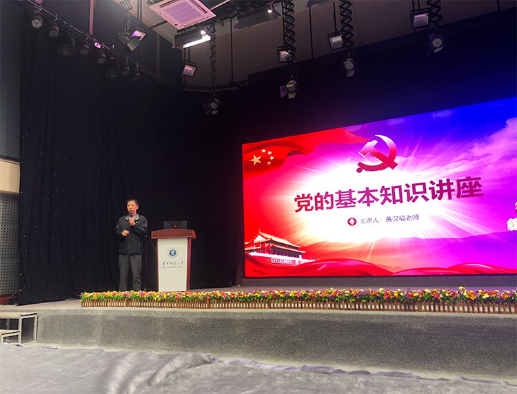 2018年10月12日下午14:00,我院研究生团总支于九号楼六楼演播厅举办了党的基本知识讲座活动。此次讲座由团总支书记徐苏晓主持,由从事学生思想政治工作多年的辅导员黄汉福老师主讲。研究生团总支成员及2018级全体研究生团员参加了此次讲座。
