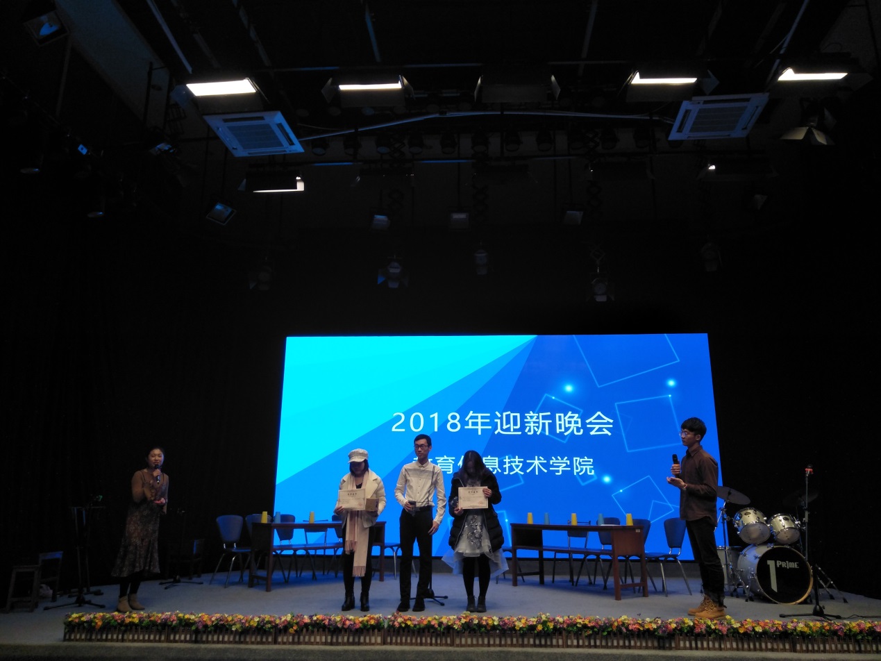 2018年12月14日17:30,华中师范大学教育信息技术学院“秀才艺,展风采”迎新晚会在九号楼六楼演播厅成功举行。此次晚会由教育信息技术学院研究生会和信息管理学院研究生会主办,经过工作人员的精心策划和筹备,得到了学院领导老师的大力支持以及同学们的积极参与。此次活动以“秀才艺,展风采”为主题,旨在为我院研究生同学搭建一个秀出自我才艺、挥洒自我风采的舞台,为同学们的科研之路铺满鲜花和掌声,让同学们体验到学院这个大集体的温暖和力量。出席本次活动的领导老师有我院辅导员黄汉福老师、王潘老师,我院研究生、信息管理学院研究生参与了晚会。