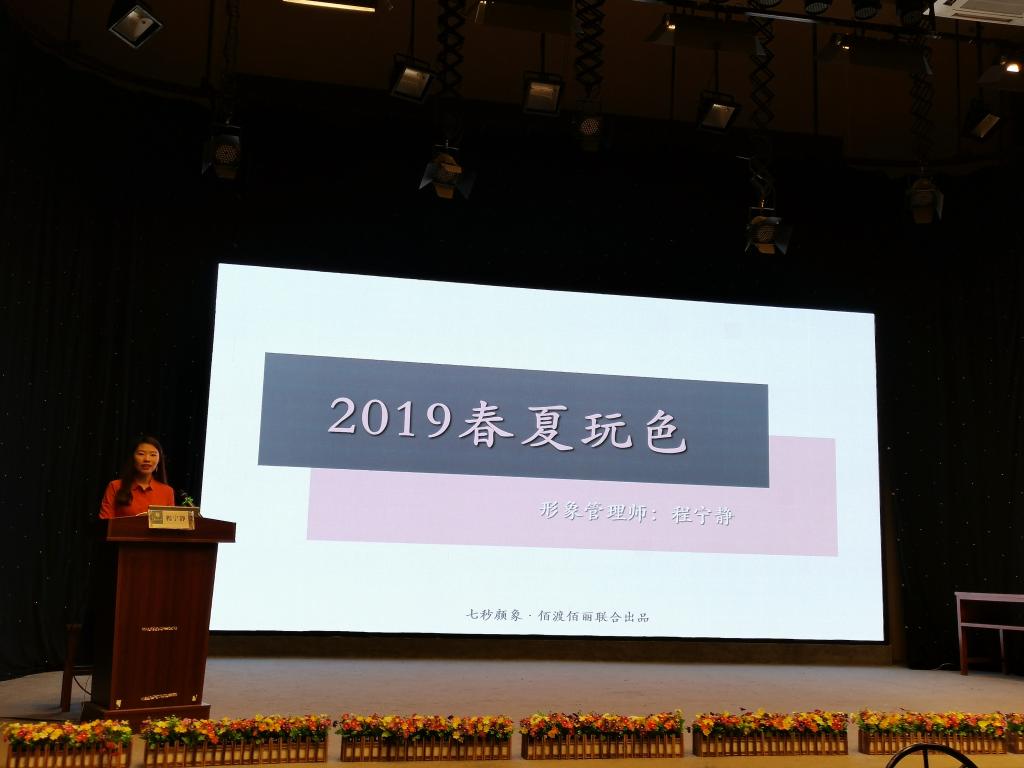 3月7日女生节晚上19:00,由我院与信息管理学院研会生活部主办,文院、外院、心院生活部协办的五院联合女生节形象管理交流活动在九号楼六楼演播厅成功举办。本次活动邀请了七秒颜象工作室首席形象管理师程宁静老师为大家解读2019春夏流行色彩,分享人体色与色彩冷暖判别方法,分享服饰色彩搭配技法干货。