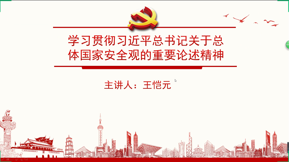 在学习习近平新时代中国特色社会主义思想三十讲中的第二十三讲——坚持总体国家安全观时,大家观看了正确树立国家安全观的相关视频,对相关知识点进行了研究学习。统筹发展和安全,增强忧患意识,做到居安思危,是我们党治国理政的一个重大原则。